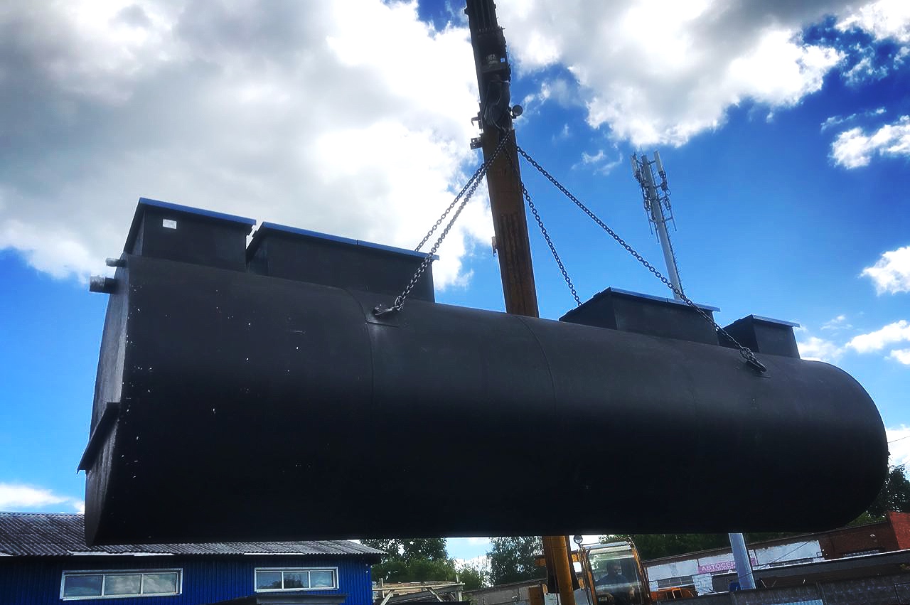 Габариты очистного сооружения: длина 5800 / диаметр 2400 / вес 3500 кг.